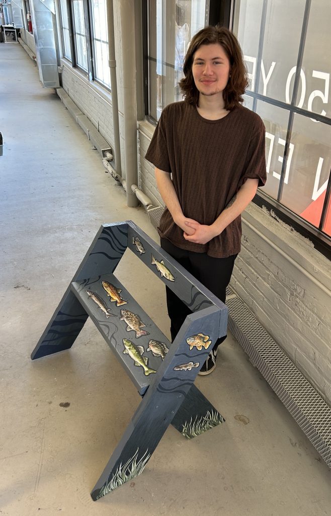 Alex was a junior at the Milwaukee Institute of Art & Design (MIAD) studying New Studio Practice when he designed and painted this bench in Spring 2024.
